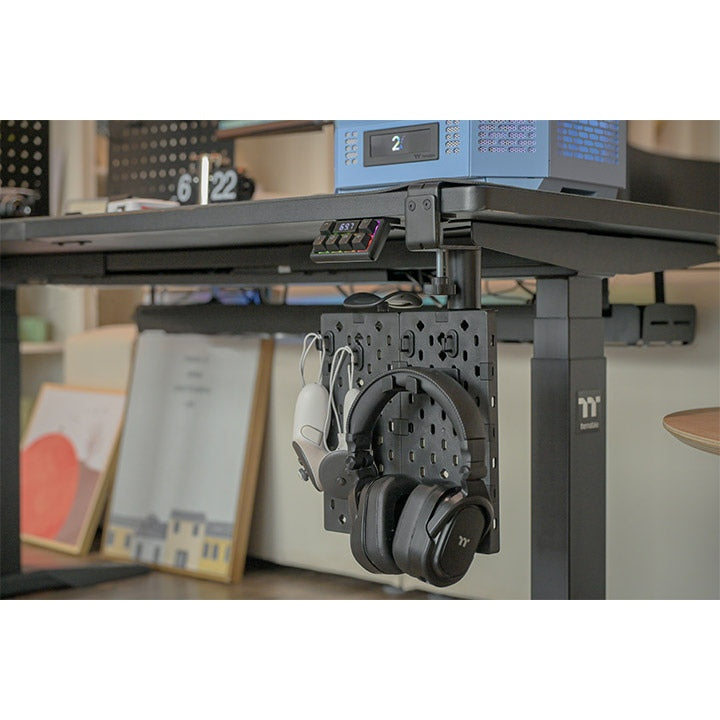 Thermaltake provides gamers and office workers with a highly compatible and easy-to-install desktop storage solution. The Gaming Desk Pegboard is a multi-functional, beautiful and stylish desk organizer and storage stand that provides more than one installation method. Also, the pegboard features a reinforced plastic structure and powder-coated surface, offering rugged performance, with oval nail holes and a waterproof surface that allows users to DIY their layout.
