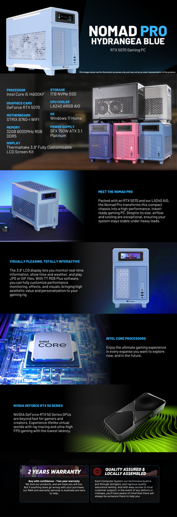 Nomad PRO Hydrangea Blue Intel 14600KF, RTX 5070, 32GB DDR5 RAM