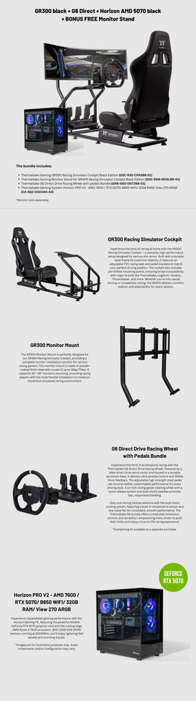 GR300 black + G6 Direct Drive + Horizon AMD 5070 black + BONUS FREE Monitor Mount