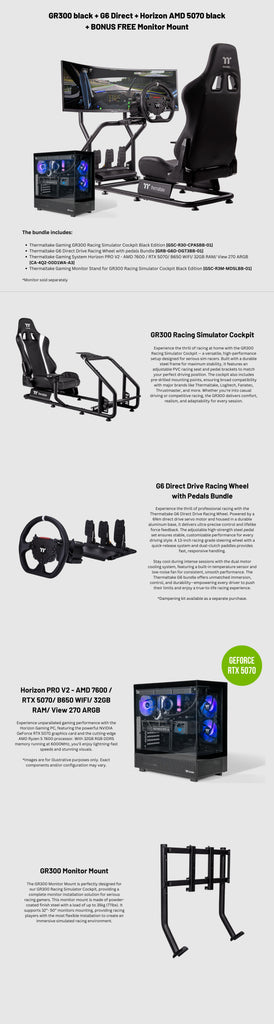 GR300 black + G6 Direct Drive + Horizon AMD 5070 black + BONUS FREE Monitor Mount